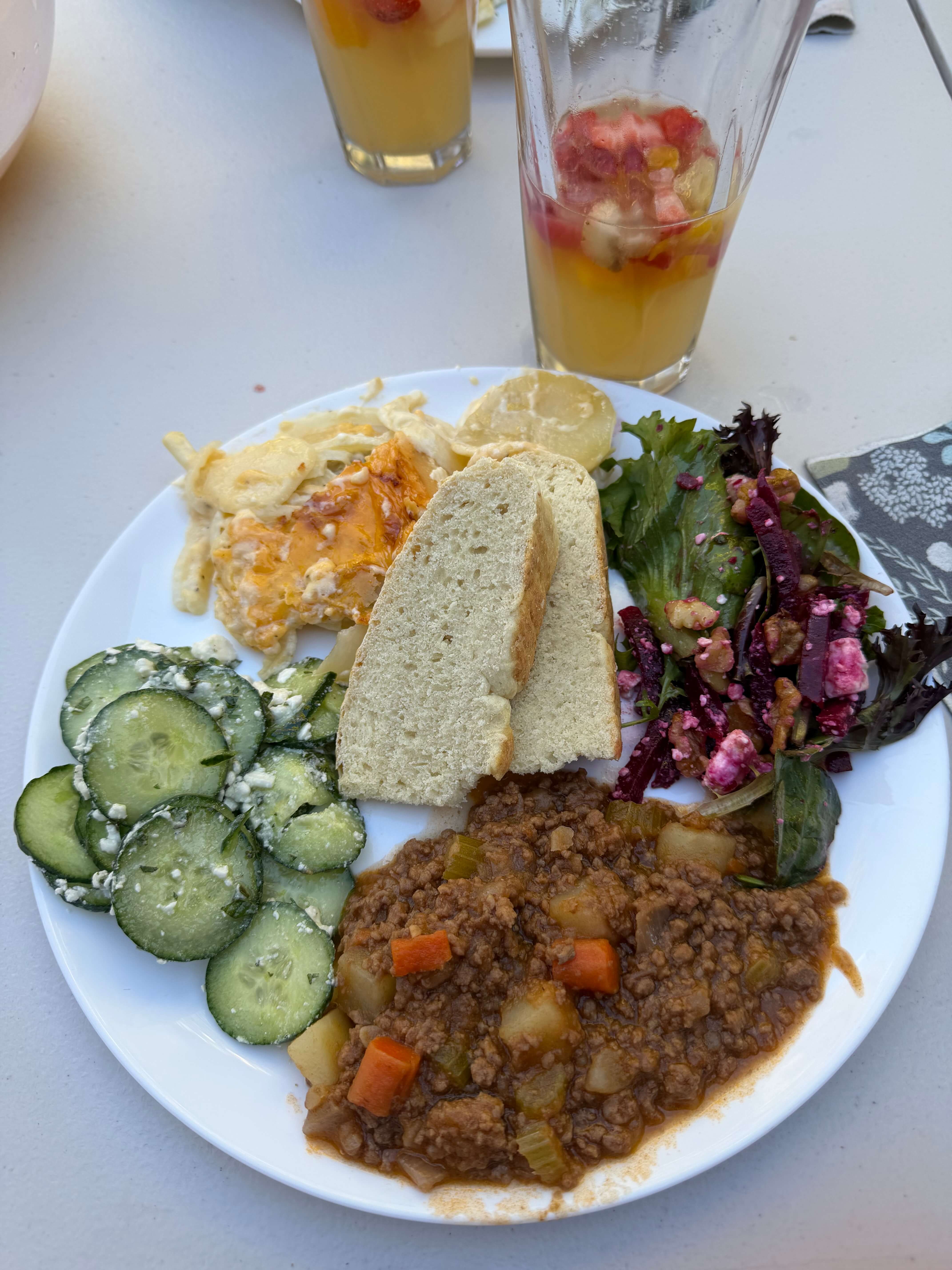 Then we enjoyed Savory Mince, which was pretty similar to my mom’s goulash when I was a kid. On the side of the mince was a non-yeast bread called Damper, which only has three ingredients!